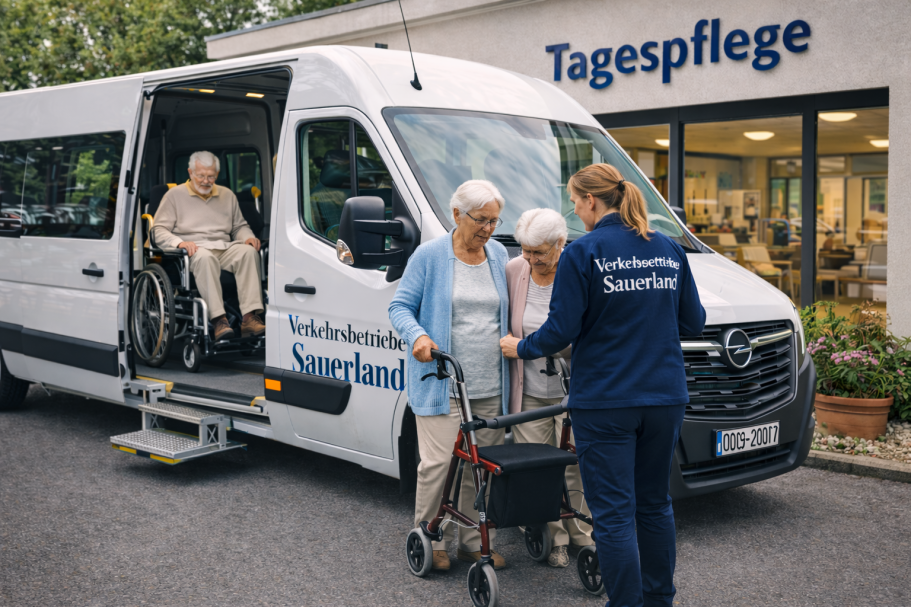 Der Fahrdienst der Verkehrsbetriebe Sauerland übernimmt zuverlässige und strukturierte Einrichtungsfahrten für Tagespflegen, Pflegeeinrichtungen und soziale Einrichtungen im gesamten regionalen Umfeld. Viele Seniorinnen und Senioren sind auf eine sichere Beförderung angewiesen, um regelmäßig an Angeboten der Tagespflege teilnehmen zu können. Genau hier sorgen wir für eine pünktliche, komfortable und gut organisierte Beförderung.